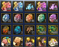 | 2つ目 精錬石、結晶石類 CP書2種 熟練値用と端数用 あとなんか適当 だいたい適当 |