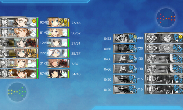 道中(駆逐2軽空2正空2) 決戦(正空1戦艦3駆逐2)