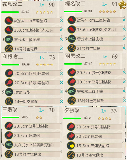 あ、忘れてた途中で霧島榛名の電探外して徹甲弾にしてました