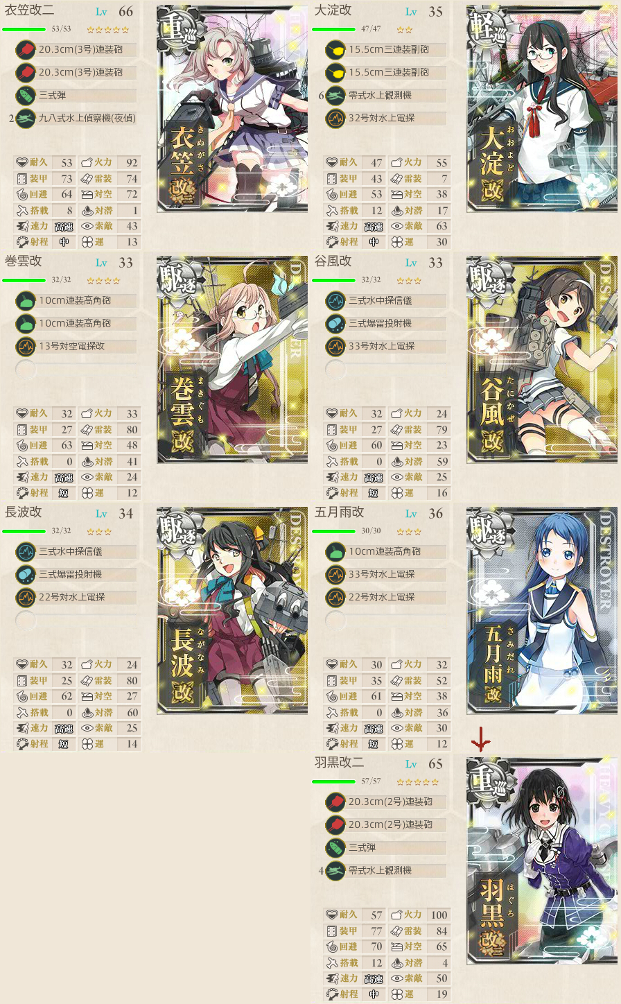 途中でボス削り要因が地味に足りなかったので五月雨を羽黒にチェンジ